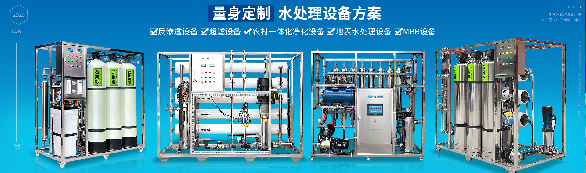 水處理設備種類多,客戶可有多種選擇方案,如:反滲透設備,超濾設備,農村一體化凈水設備,地表水處理設備,MBR設備,實驗室設備,商用酒樓直飲水設備。